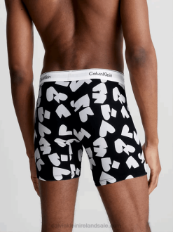 F64Z3708 Remembered Hearts Print Black Men Calvin Klein Boxers Briefs