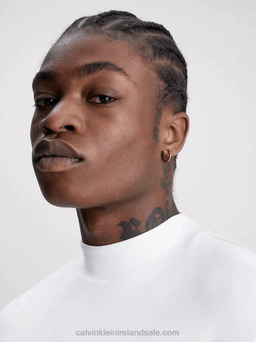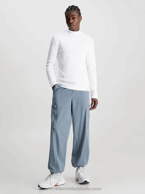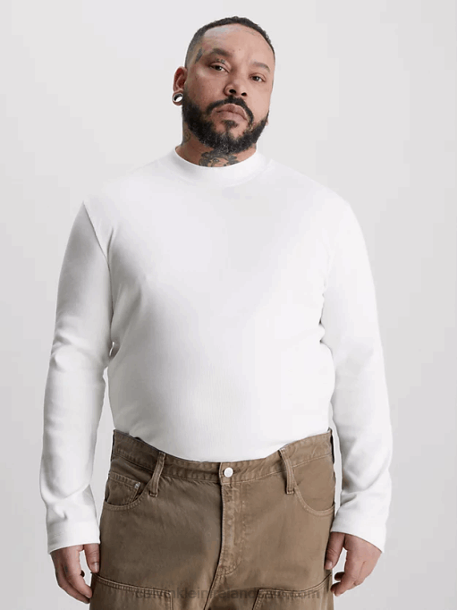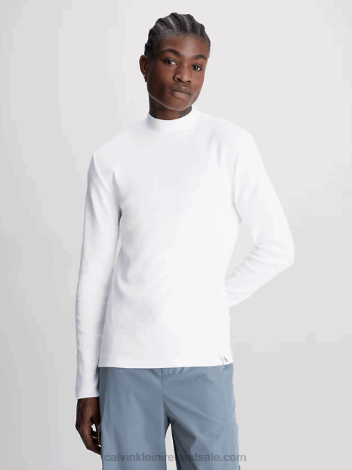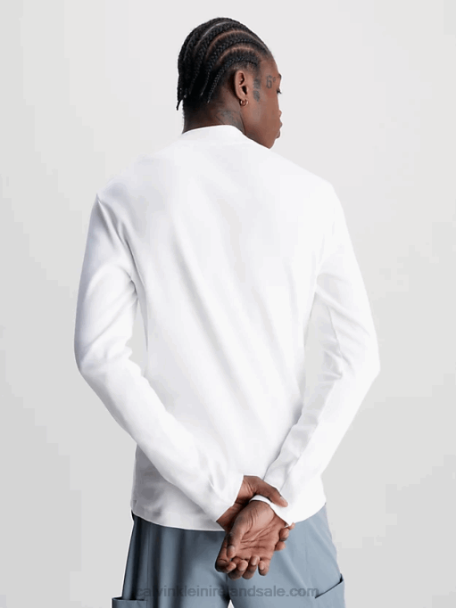 F64Z3848 Bright White Men Calvin Klein Slim Ribbed Long Sleeve T-shirt