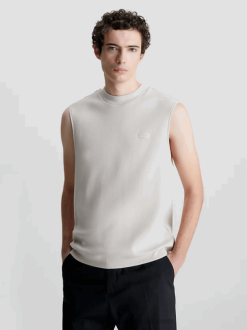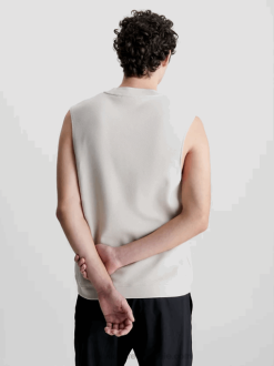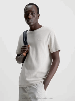 F64Z3940 Stony Beige Men Calvin Klein Ribbed Interlock T-shirt