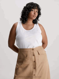 F64Z744 Bright White Women Calvin Klein Relaxed Cropped Back Shirt