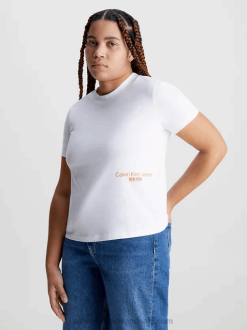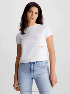 F64Z608 Bright White Women Calvin Klein Cropped Logo T-shirt