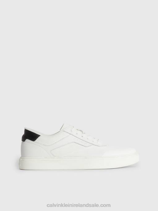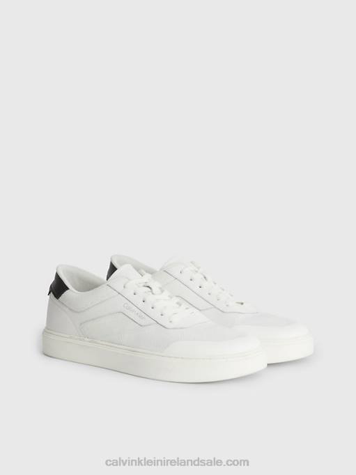 F64Z3883 White/Black Men Calvin Klein Leather and Knit Trainers