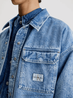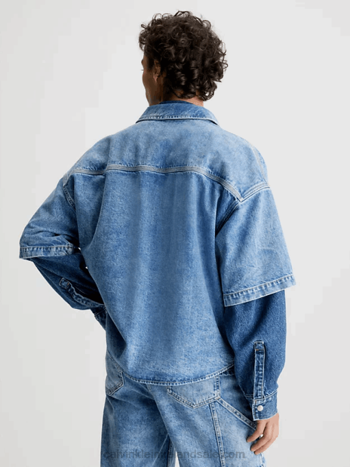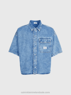 F64Z544 Denim Medium Women Calvin Klein Fitted Denim Utility Dress
