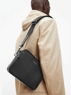 F64Z3917 Black Men Calvin Klein Recycled Vegan Leather Crossbody Bag