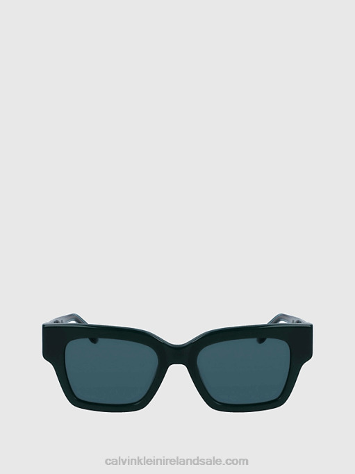 F64Z393 Dark Green Women Calvin Klein Rectangle Sunglasses