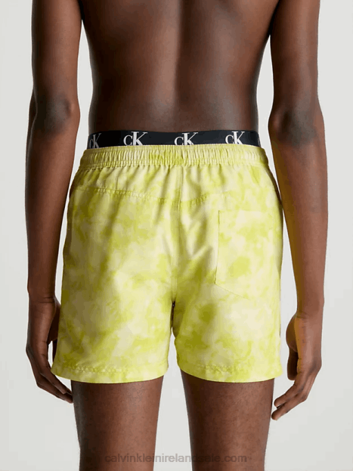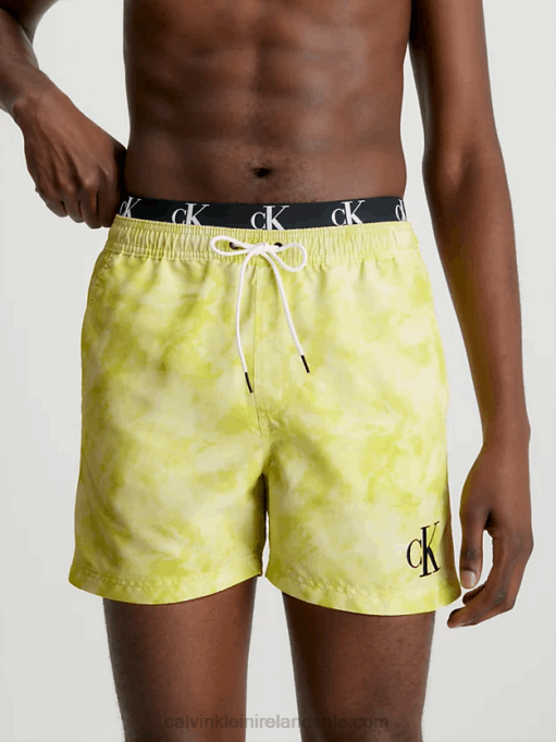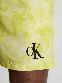 F64Z3939 Tie Dye Yellow Aop Men Calvin Klein Double Waistband Swim Shorts