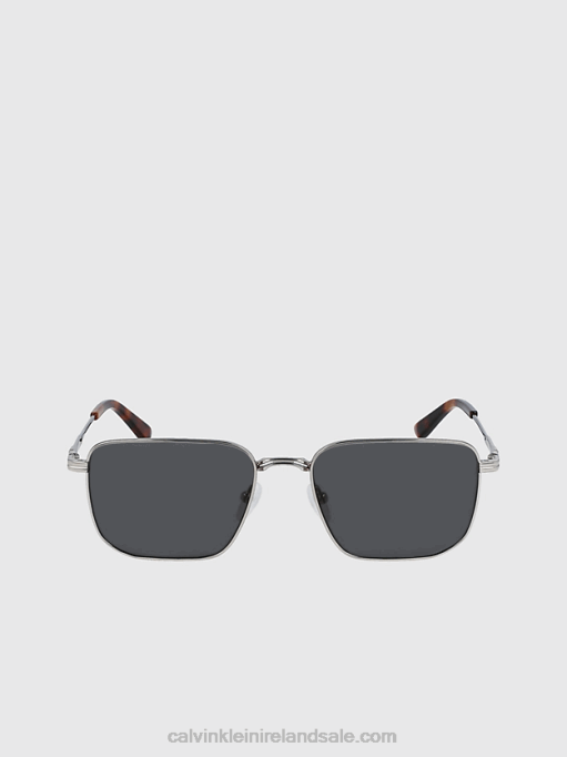 F64Z3977 Silver Men Calvin Klein Rectangle Sunglasses