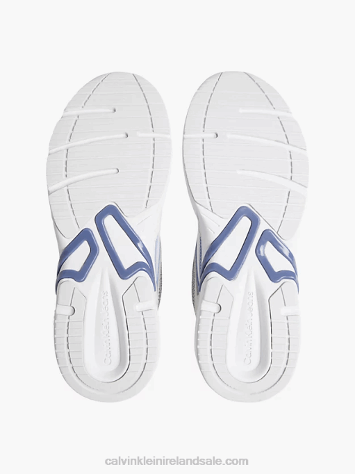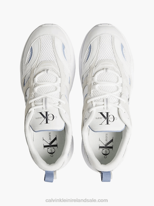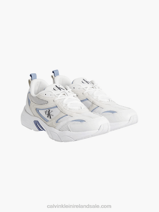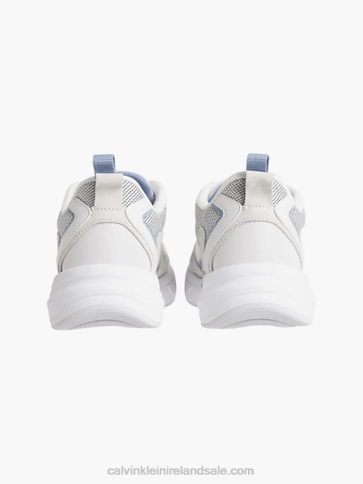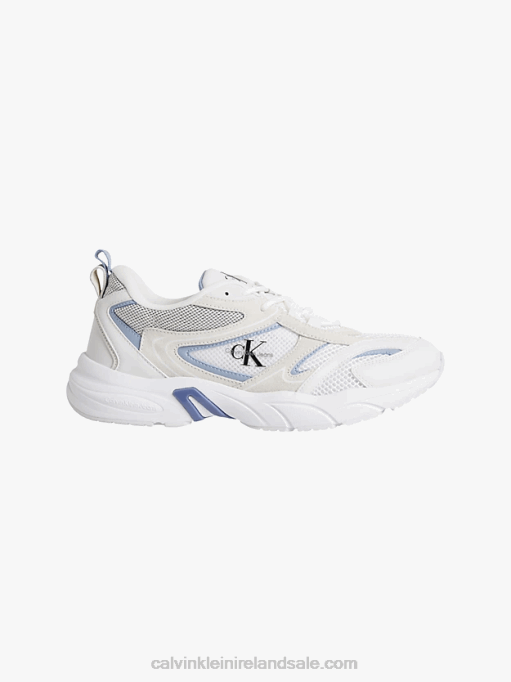 F64Z3986 White/Iceland Blue Men Calvin Klein Leather and Recycled Mesh Trainers