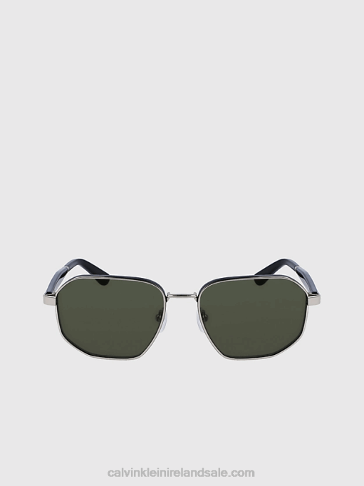 F64Z3988 Silver Men Calvin Klein Rectangle Sunglasses