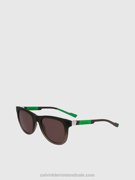 F64Z4017 Brown Grey Men Calvin Klein Rectangle Sunglasses