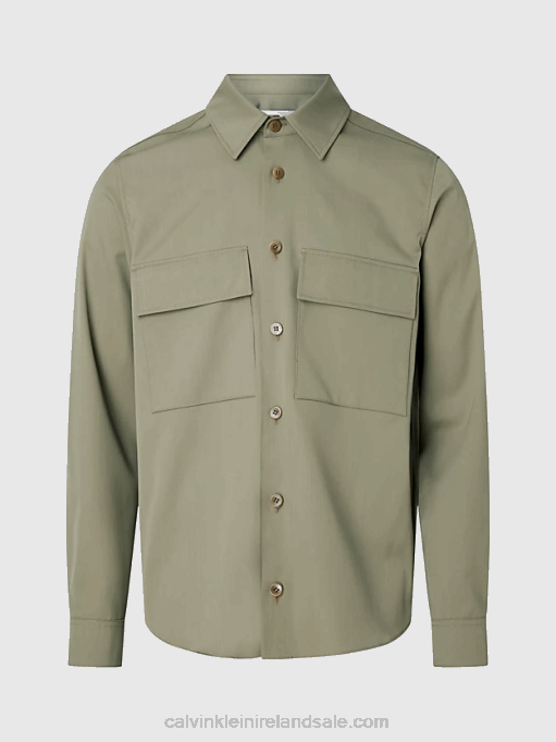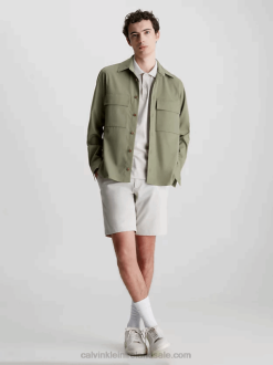 F64Z4164 Light Grey Men Calvin Klein Relaxed Twill Checkered Overshirt