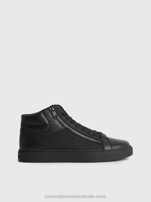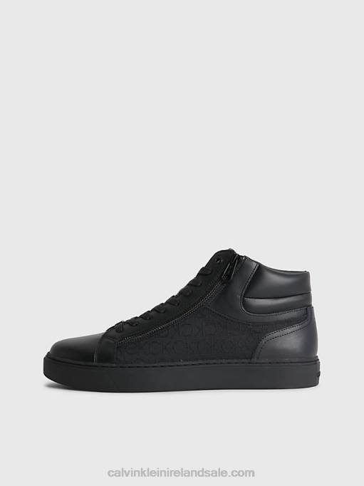 F64Z4050 Black Mono Jacquard Men Calvin Klein Leather High-Top Logo Trainers