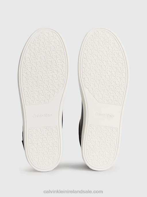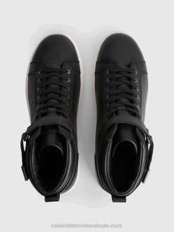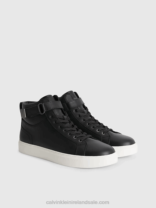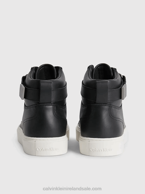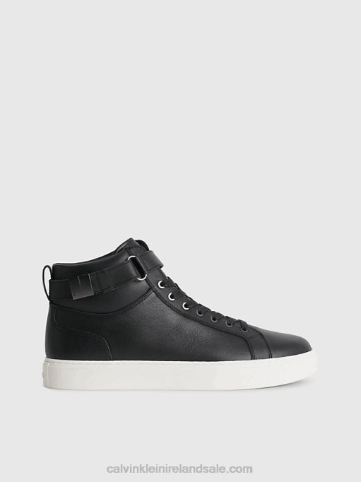 F64Z4056 Black Men Calvin Klein Leather High-Top Trainers