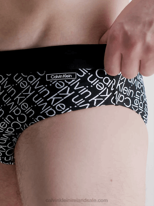 F64Z4072 Zigzag Logo Black Aop Men Calvin Klein Swim Briefs