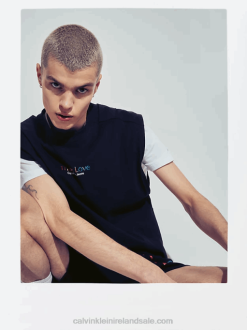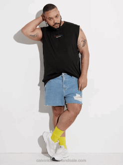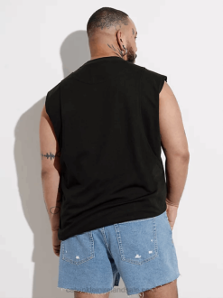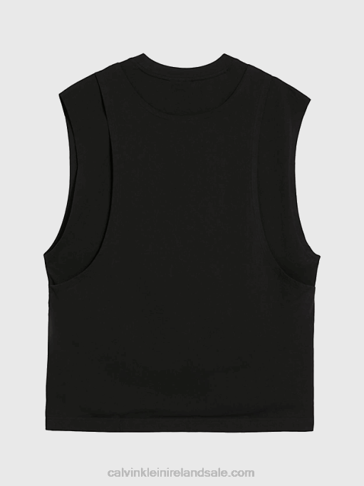 F64Z47 Black Women Calvin Klein Plus Size Ribbed Monogram Tank Dress
