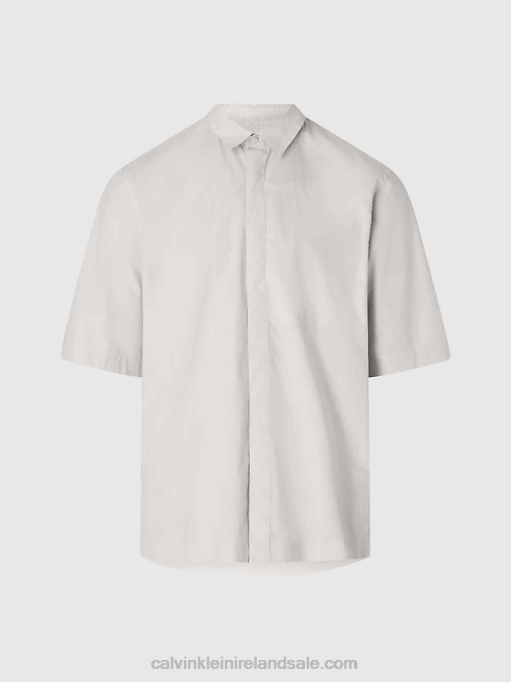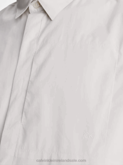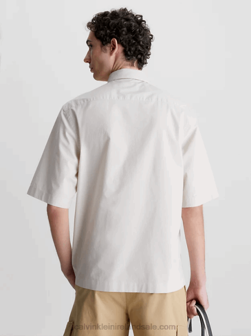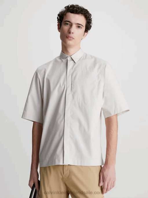 F64Z4180 Stony Beige Men Calvin Klein Poplin Short Sleeve Shirt