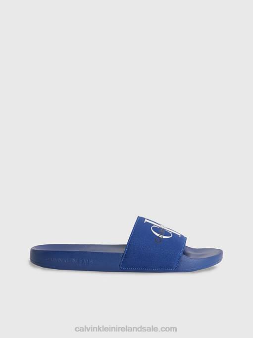 F64Z4168 Rich Navy Men Calvin Klein Recycled Canvas Sliders