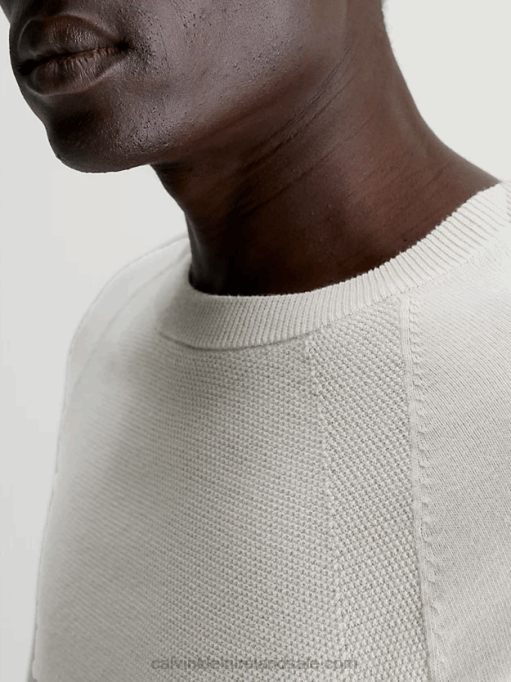 F64Z4190 Stony Beige Men Calvin Klein Organic Cotton Textured Jumper