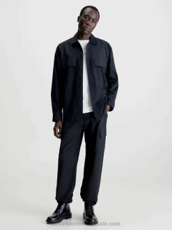 F64Z4206 Black Men Calvin Klein Poplin Stretch Shirt