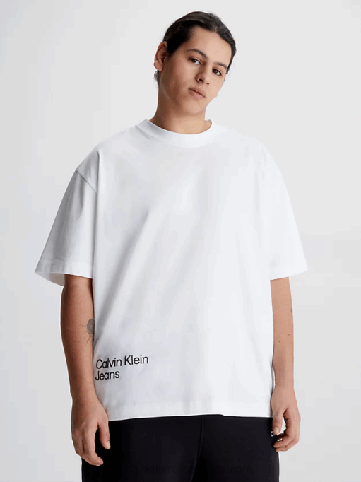 F64Z745 Bright White Women Calvin Klein Boyfriend Logo T-shirt