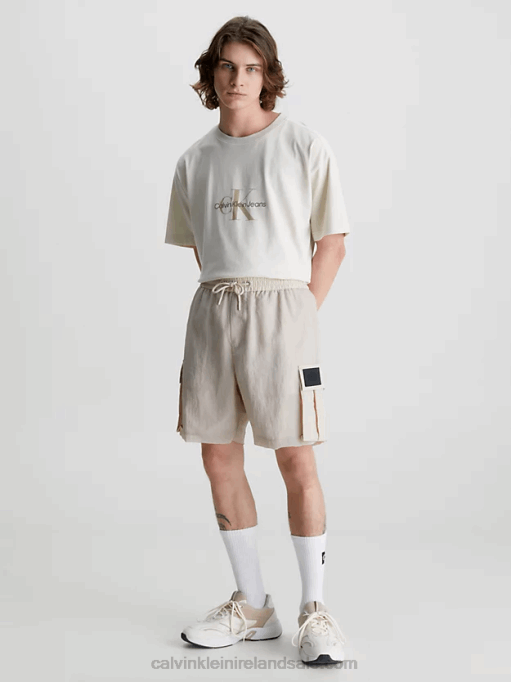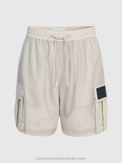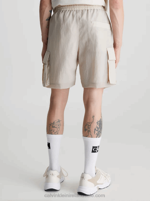 F64Z4361 Classic Beige Men Calvin Klein Relaxed Nylon Mesh Cargo Shorts