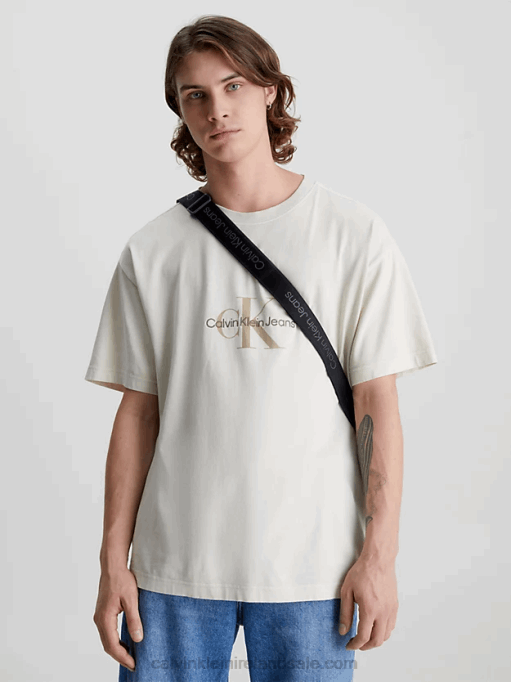 F64Z3934 Classic Beige Men Calvin Klein Relaxed Cotton Twill Shirt