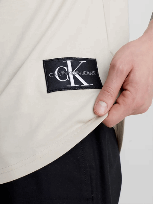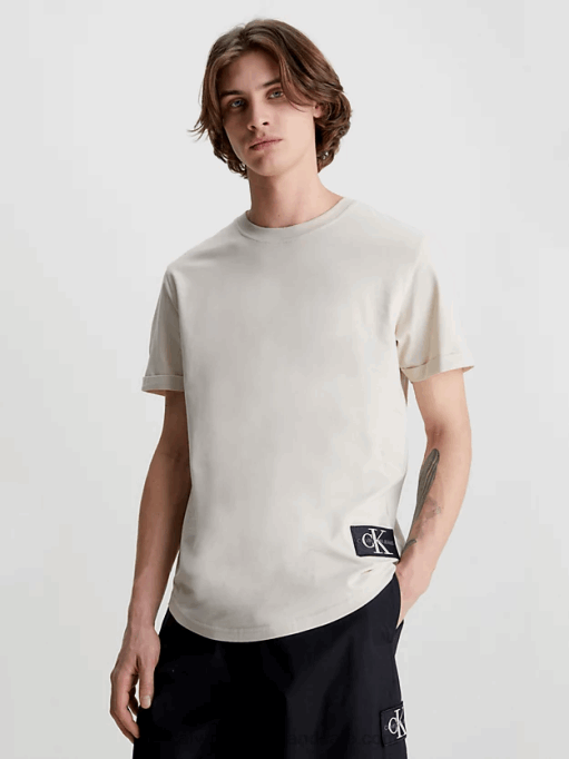 F64Z4391 Classic Beige Men Calvin Klein Organic Cotton Badge T-shirt