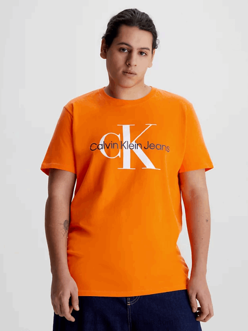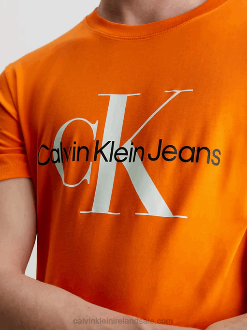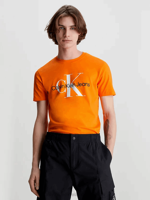 F64Z4421 Vibrant Orange Men Calvin Klein Monogram Jogger Shorts