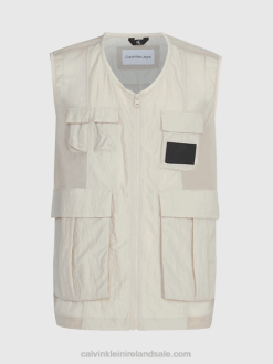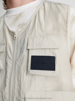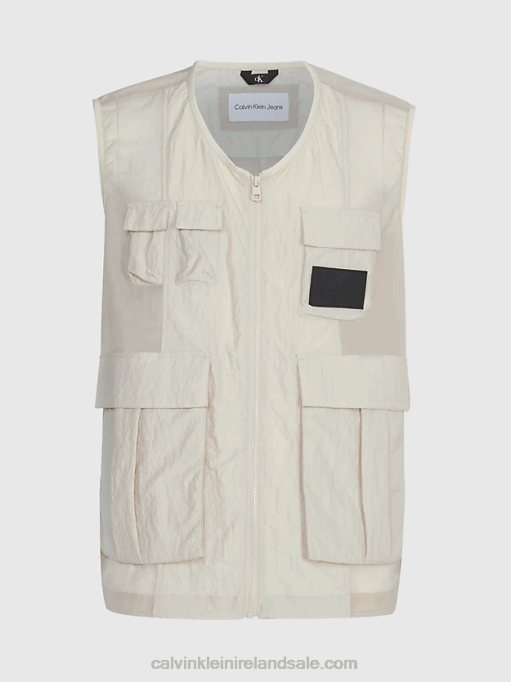 F64Z4361 Classic Beige Men Calvin Klein Relaxed Nylon Mesh Cargo Shorts