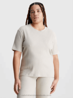 F64Z1852 Classic Beige Women Calvin Klein Ribbed Jersey T-shirt