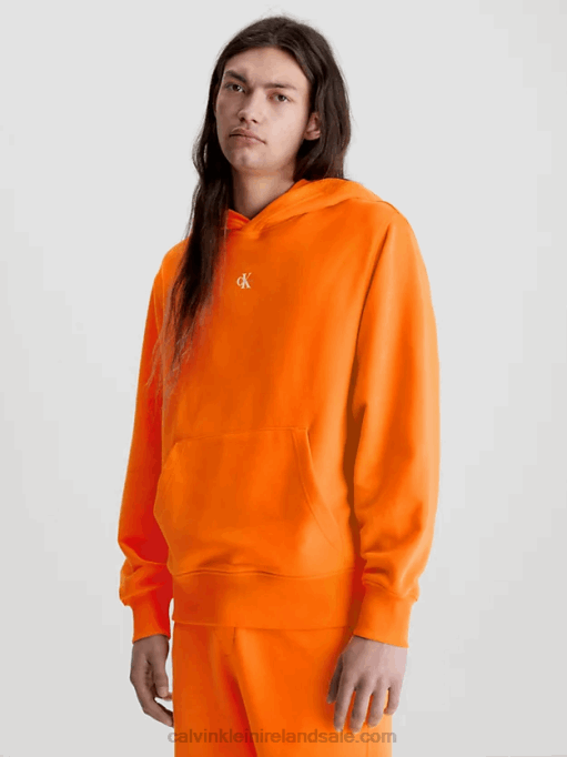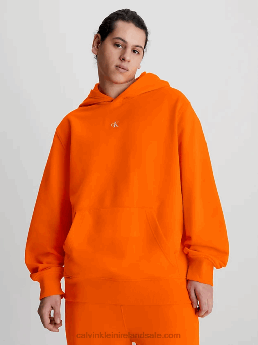 F64Z4204 Vibrant Orange Men Calvin Klein Organic Cotton Printed Sweatshirt