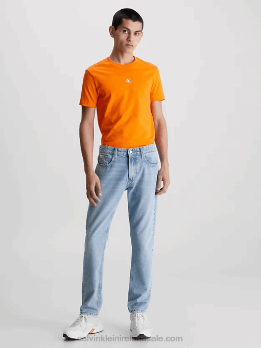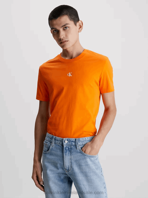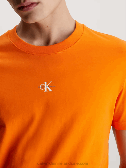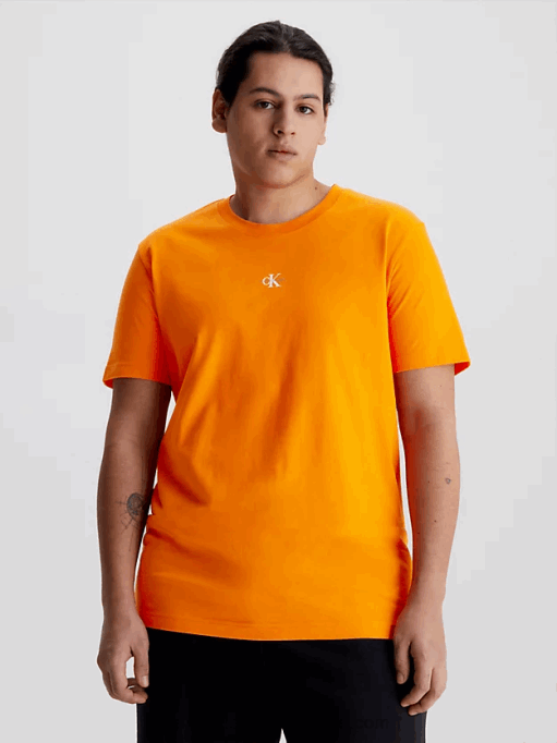 F64Z4444 Vibrant Orange Men Calvin Klein Organic Cotton Monogram T-shirt