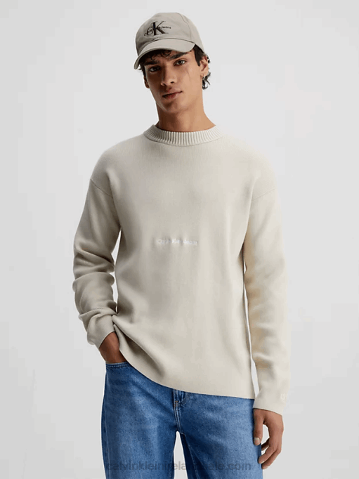 F64Z3934 Classic Beige Men Calvin Klein Relaxed Cotton Twill Shirt