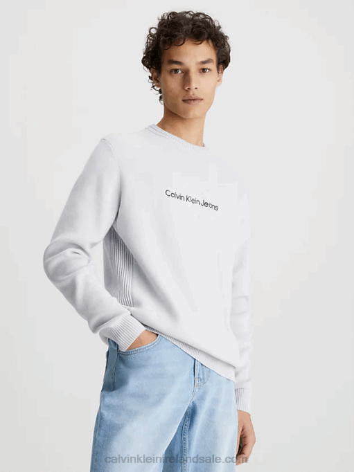 F64Z2264 Bone White Men Calvin Klein Unisex Short Sleeve Sweatshirt
