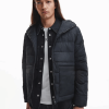 F64Z2563 Black/Bright White Women Calvin Klein Cropped Logo Hoodie