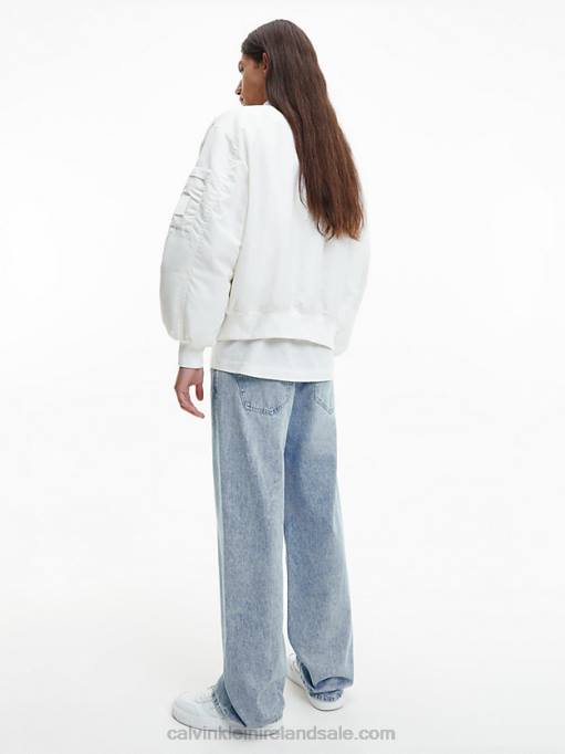 F64Z4515 Ivory Men Calvin Klein Relaxed Nylon Bomber Jacket