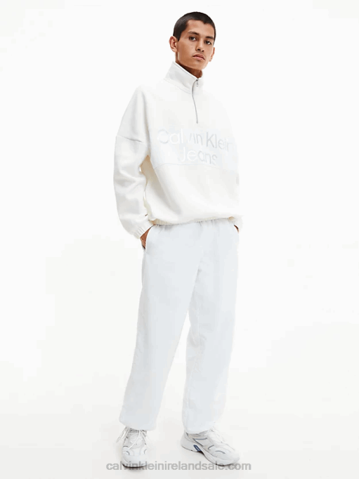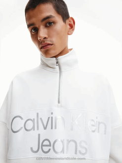 F64Z4523 Ivory Men Calvin Klein Relaxed Zip Neck Sweatshirt