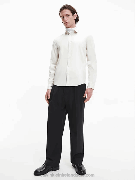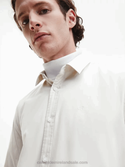 F64Z4531 Stony Beige Men Calvin Klein Slim Poplin Stretch Shirt