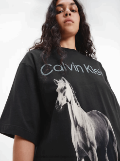 F64Z1017 Black Beauty Women Calvin Klein Oversized T-shirt Dress