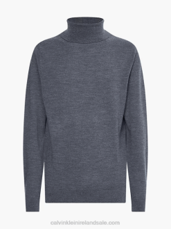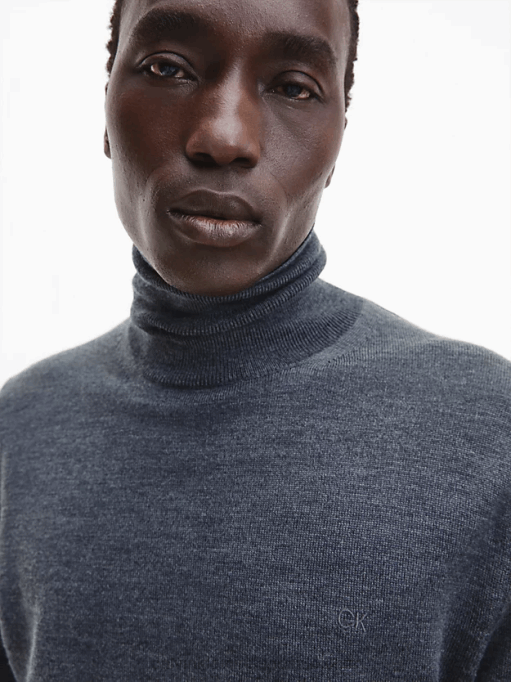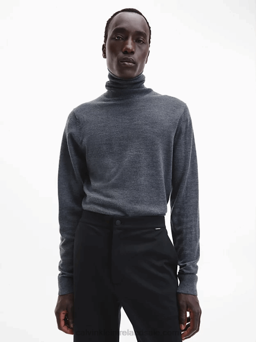 F64Z4571 Dark Grey Heather Men Calvin Klein Merino Wool Roll Neck Jumper