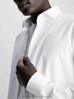 F64Z4108 Bright White Men Calvin Klein Slim Stretch Pique Polo Shirt