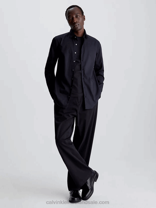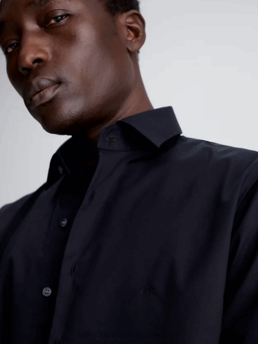 F64Z4115 Light Blue Men Calvin Klein Slim Poplin Stretch Shirt