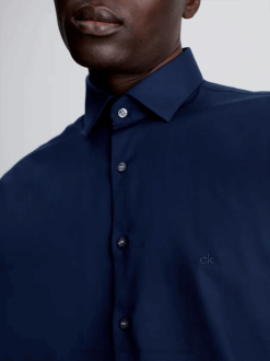 F64Z4115 Light Blue Men Calvin Klein Slim Poplin Stretch Shirt