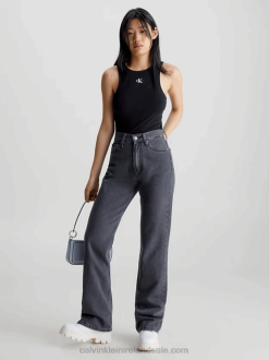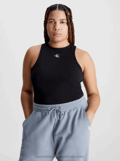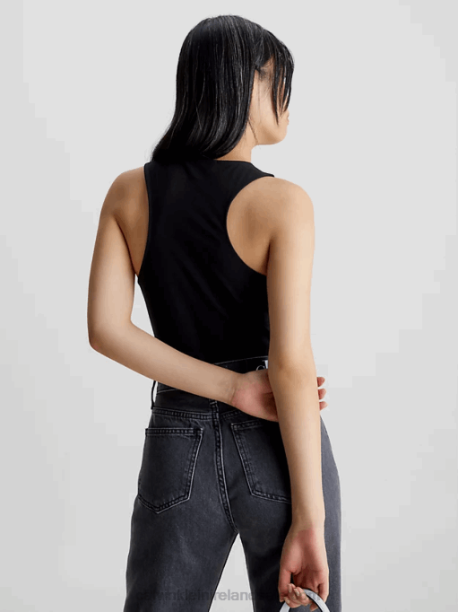 F64Z73 Black Women Calvin Klein Seersucker Stretch Cut Out Top