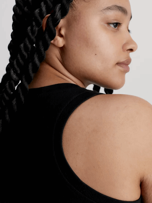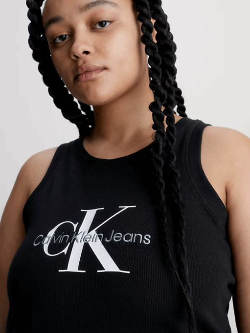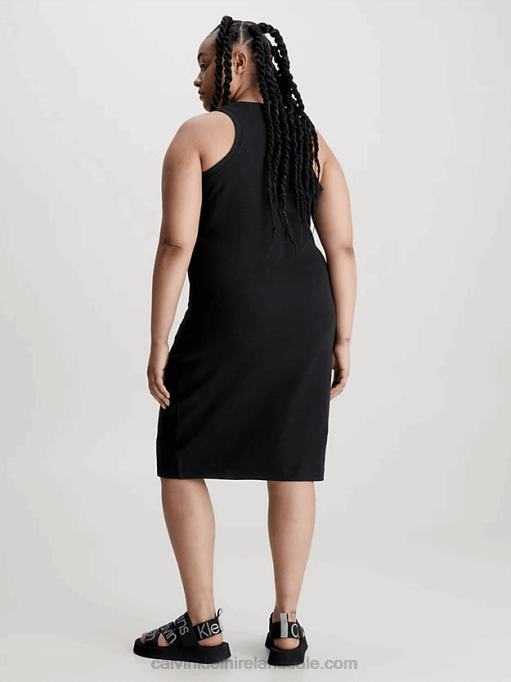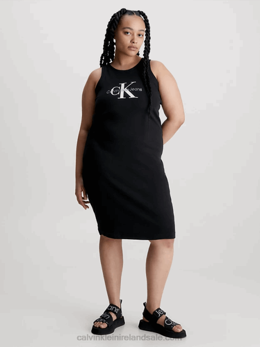 F64Z47 Black Women Calvin Klein Plus Size Ribbed Monogram Tank Dress