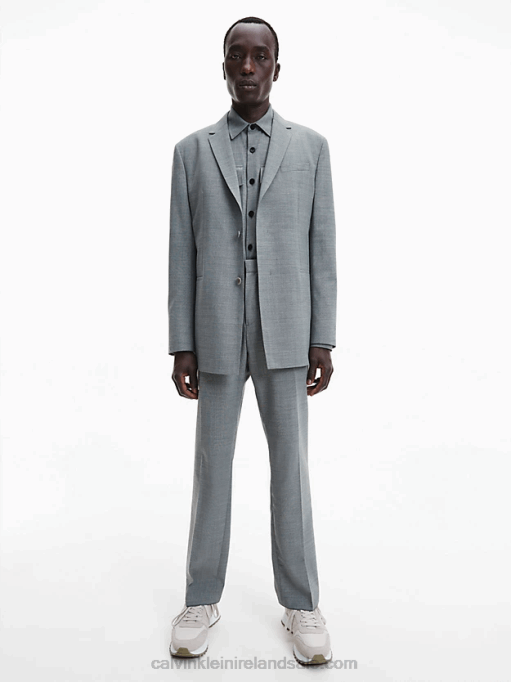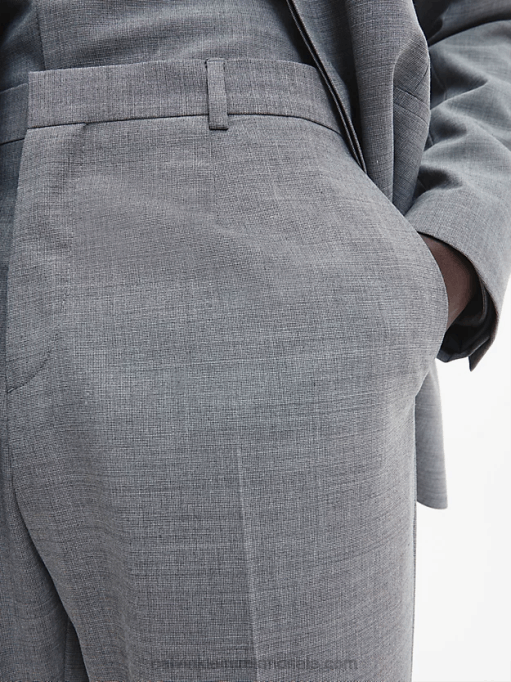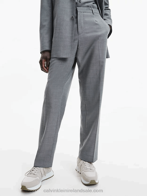 F64Z4752 Moon Mist Men Calvin Klein Two Tone Wool Blend Trousers
