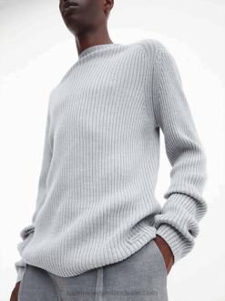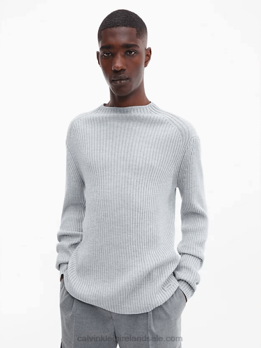 This mock neck jumper is crafted from a heavy ribbed wool blend. This item is 55% sustainable.