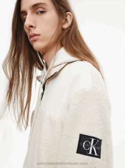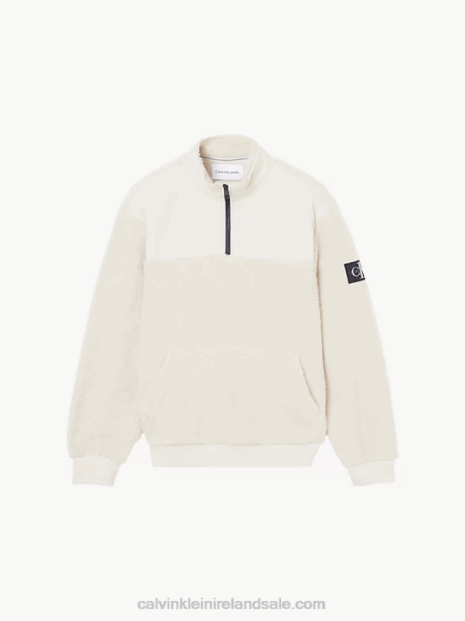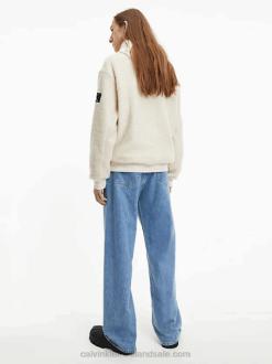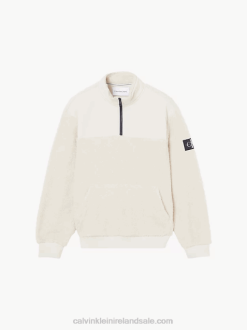 F64Z2433 Eggshell Women Calvin Klein Unisex Zip Neck Sweatshirt