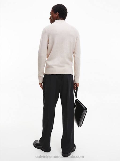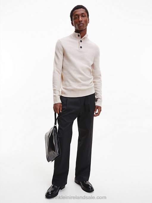 F64Z4933 Stony Beige Men Calvin Klein Button Neck Jumper