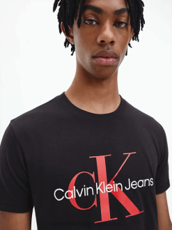 F64Z4938 Black/Salsa Men Calvin Klein Slim Monogram T-shirt